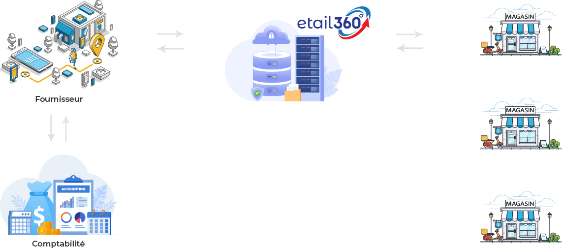 APPRENDRE ENCORE PLUSLa satisfaction du client à son meilleur ! Automatisez les notifications et les mises à jour pour plus d’agilité et de précision. Permettez à vos détaillants de recevoir facilement et instantanément la liste des produits, les mises à jour des prix et les offres promotionnelles. Etail 360 intègre une logique, organise et synchronise les listes spécifiques à chaque magasin ou chaîne et met à jour les étiquettes des étagères en quelques secondes.
